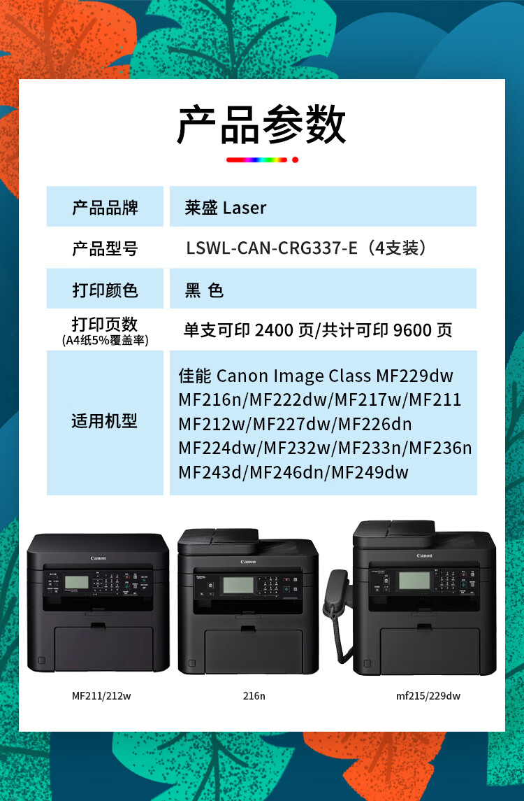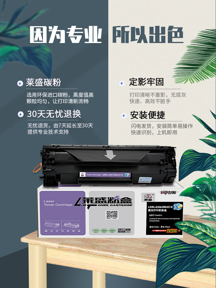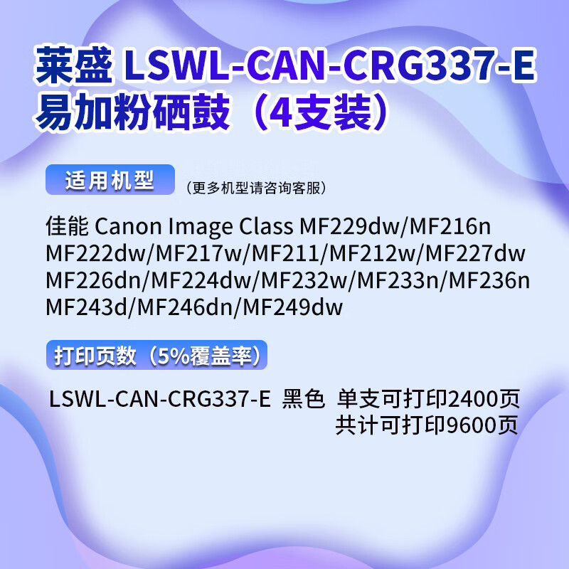 萊盛CRG337-E 易加粉款黑色硒鼓4支裝 適用佳能CANON MF229dw 226dn 216n 215 223d 212w 211打印機(jī)墨盒 自營