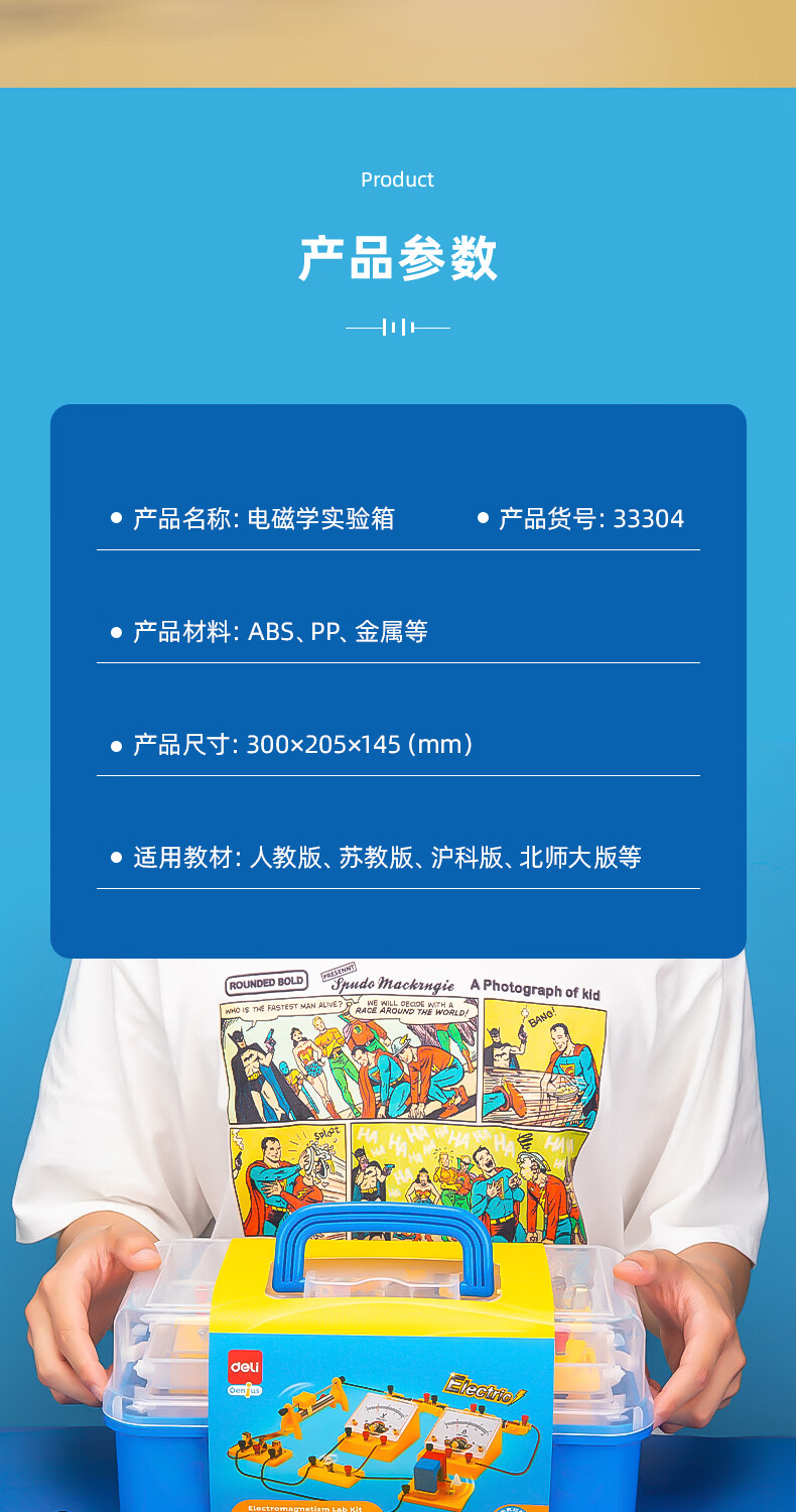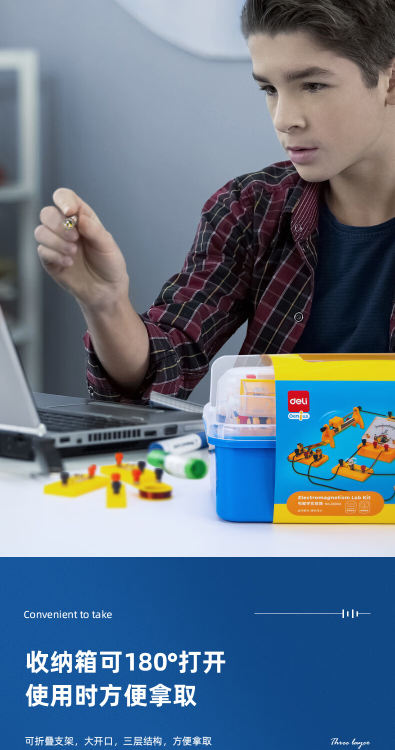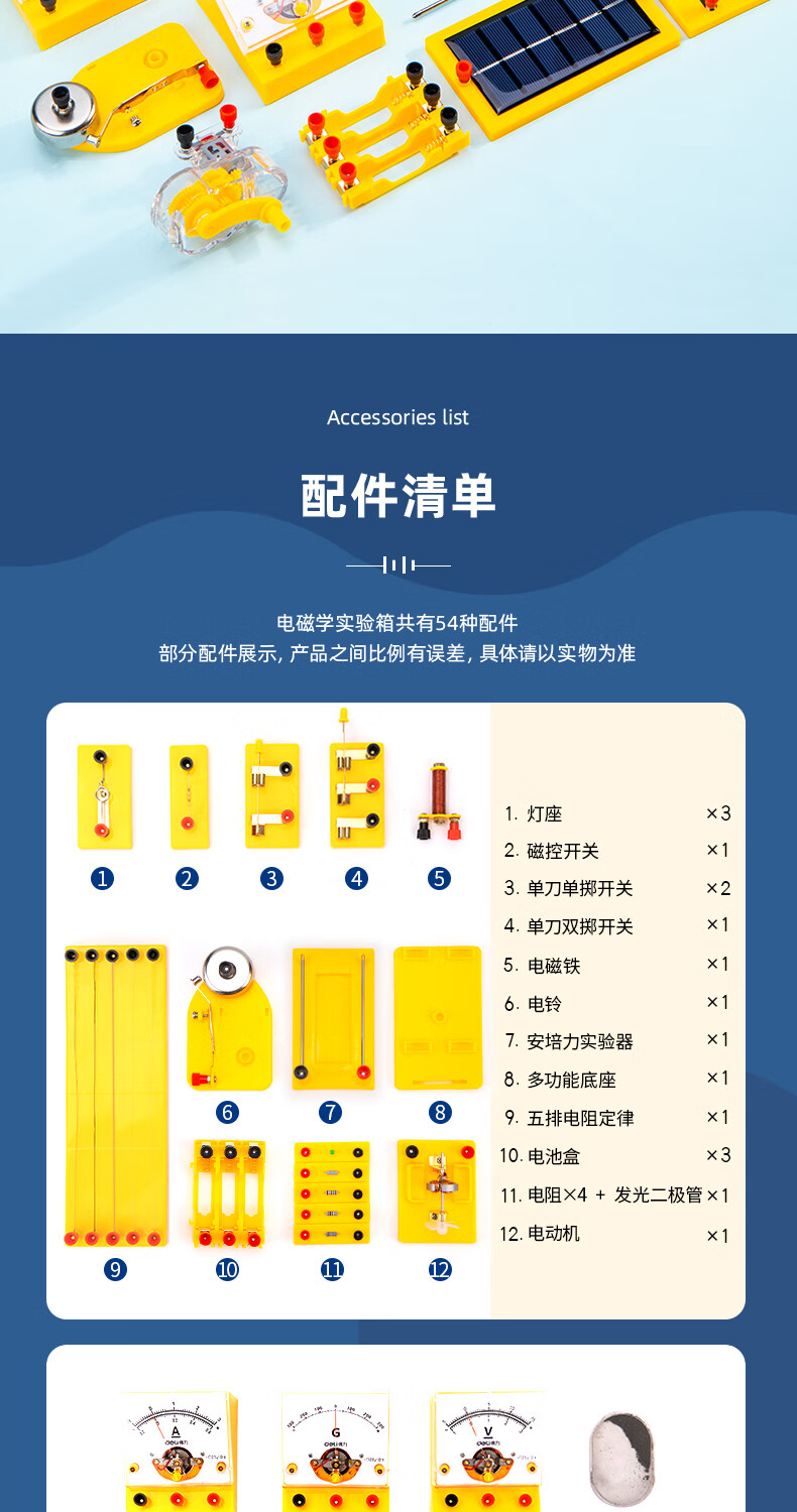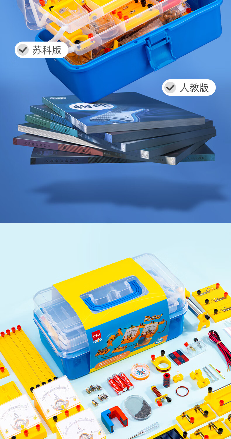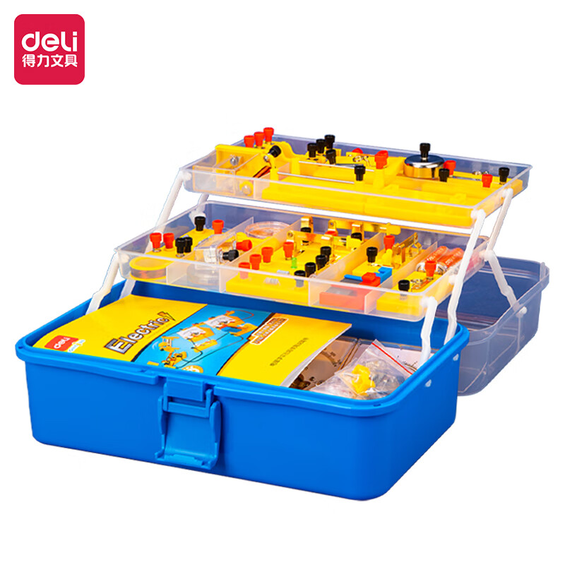 得力(deli)初中物理電磁學實驗盒 初中備考 同步教材 電學實驗器材 科學電路儀器 物理實驗箱(含86件)33304 自營